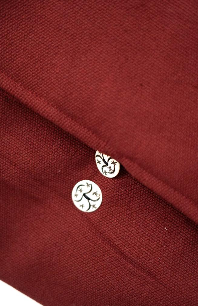 Smaller cotton messenger bag with stripes, chevron print and coconut button, 11.5″ x 11.5″ x 4″, assorted colors.