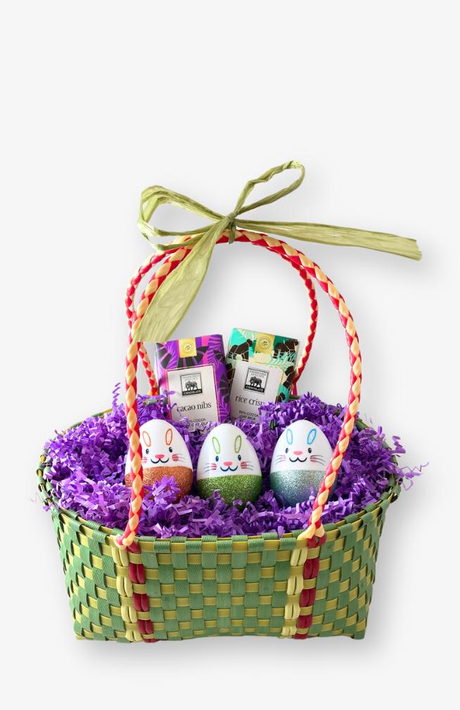 Perfect for Easter! Small dhoko weave strap market purse/basket with 2 handles, 6.5″ tall, 11″ long bottom, 6.5″ bottom width. Available in taller version.